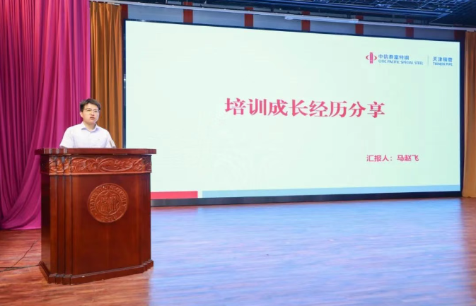 曹鹏飞做中期汇报,系统回顾了项目近一年来的坚实足迹。作为中信泰富特钢集团“国际化战略元年”的关键举措,该项目聚焦“语言筑基、文化融通、专业赋能”三大核心,通过“40天线下+80学时线上”的混合模式,为39名青年骨干量身打造国际化能力矩阵。动态评估、高管授课、海外实战、多元文化浸润等创新机制,确保了培养与企业战略同频共振。